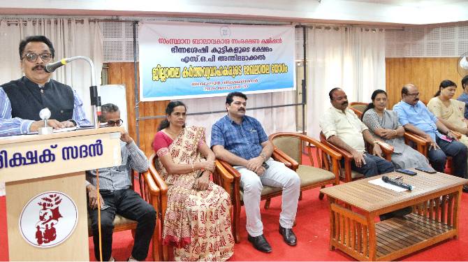 ബാലാവകാശ കമ്മീഷന്റെ നേതൃത്വത്തിൽ ഭിന്നശേഷി കുട്ടികളുടെ ക്ഷേമം സംബന്ധിച്ച എസ് ഒ പി അന്തിമമാക്കുന്നതിനായി ശിക്ഷക് സദനിൽ സംഘടിപ്പിച്ച ജില്ലാതല കർത്തവ്യവാഹകരുടെ മേഖലാതല യോഗം സംസ്ഥാന ബാലാവകാശ കമ്മീഷൻ ചെയർപേഴ്സൺ കെ. വി. മനോജ് കുമാർ ഉദ്ഘാടനം ചെയ്തു. ഭരണഘടന ഉറപ്പുവരുത്തുന്ന തുല്യ അവകാശങ്ങളും അവസരങ്ങളും ഭിന്നശേഷിക്കാർക്കും ലഭ്യമാക്കണം. മനുഷ്യാവകാശങ്ങൾ നിഷേധിക്കപ്പെടുന്ന സാഹചര്യം മാറേണ്ടതുണ്ടെന്നും ഭിന്നശേഷിക്കാരോടുള്ള സമൂഹത്തിന്റെ മനോഭാവത്തിൽ വലിയ മാറ്റം ആവശ്യമാണെന്നും കമ്മീഷൻ ചെയർപേഴ്സൺ പറഞ്ഞു.