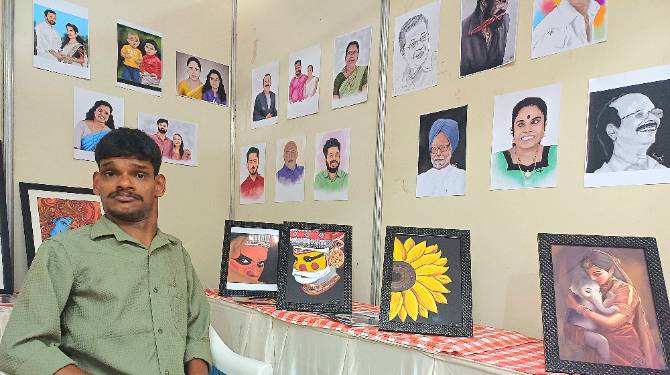 പരിമിതികളെ തോൽപ്പിച്ചു പഠനത്തിൽ മുന്നേറിയ കിരൺരാജ് ചിത്രം വരയിൽ നിന്ന് സ്ഥിരമായ ഒരു വരുമാനം നേടി സ്വന്തം കാലിൽ നിൽക്കാനാണ് പരിശ്രമിക്കുന്നത്. പി എസ് സി പരീക്ഷയ്ക്ക് സ്വന്തം നിലയിൽ തയ്യാറെടുപ്പും നടത്തിവരുന്നു. കിരണിന്റെ ചിത്രങ്ങൾ @KIRAN_RAJ_P എന്ന ഇൻസ്റ്റഗ്രാം ഐഡിയിൽ നിന്ന് വാങ്ങാം. മൂന്ന് ദിവസത്തെ കലാമേള ബുധനാഴ്ച്ച സമാപിക്കും.