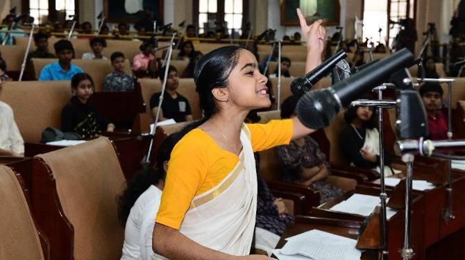 ചോദ്യങ്ങളും ഉപചോദ്യങ്ങളും ശ്രദ്ധക്ഷണിക്കലും മന്ത്രിമാരുടെ മറുപടികളും സ്പീക്കറുടെ റൂളിംഗുമൊക്കെയായി ചടുലമായി വിദ്യാർത്ഥികളുടെ മാതൃകാ നിയമസഭ. കേരള നിയമസഭ പുസ്തകോത്സവത്തിന്റെ ഭാഗമായി സെക്രട്ടേറിയറ്റിലെ പഴയ നിയമസഭ മന്ദിരത്തിൽ നടത്തിയ വിദ്യാർത്ഥികളുടെ മാതൃക നിയമസഭ പ്രതിഷേധത്തിനും വാക്ക്ഔട്ടിനും വരെ വേദിയായി.