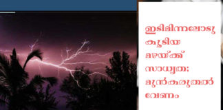 ഡിസംബര് ആറ് വരെ ഇടിമിന്നലോടുകൂടിയ മഴയ്ക്ക് സാധ്യത